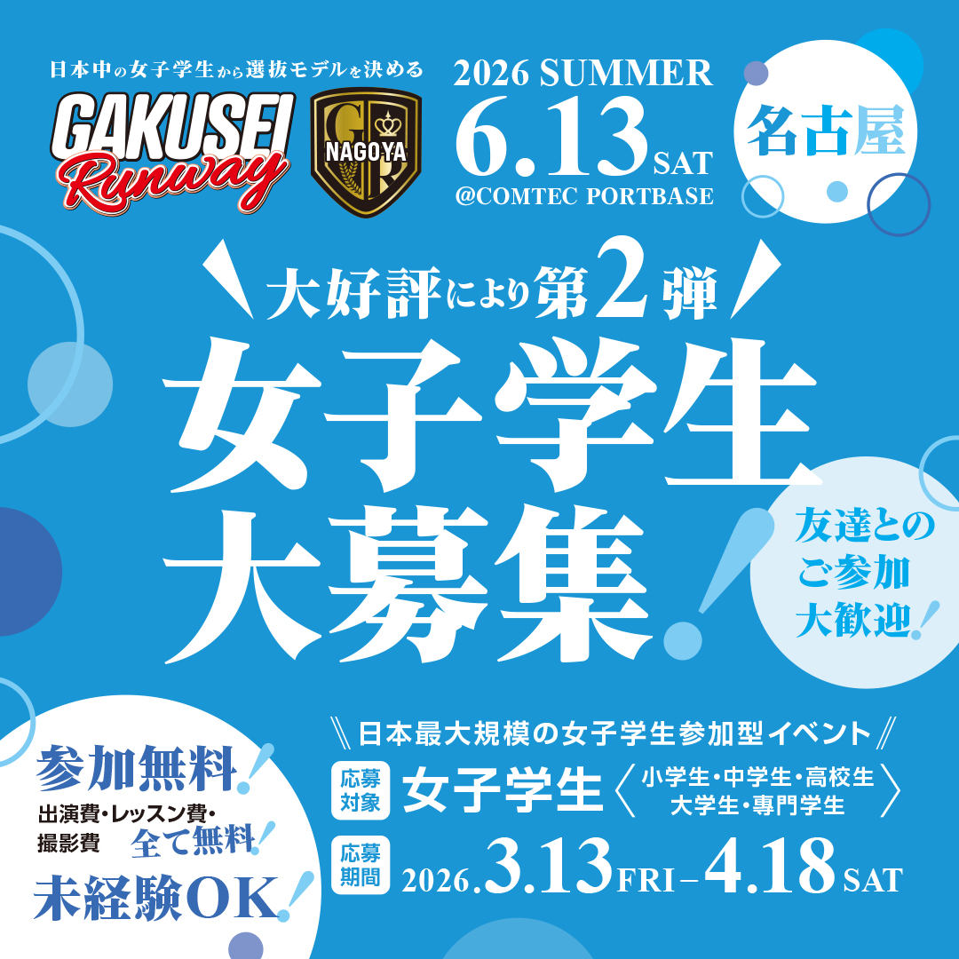 関西コレクションプロデュースする日本最大規模女子学生参加型イベント、ついに名古屋へ上陸!GAKUSEI RUNWAY 2026 SUMMER in NAGOYA開催決定!