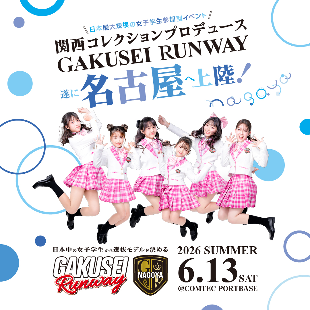 関西コレクションがプロデュースする日本最大規模女子学生参加型イベント、ついに名古屋へ上陸!GAKUSEI RUNWAY 2026 SUMMER in NAGOYA開催決定!出演者大募集!