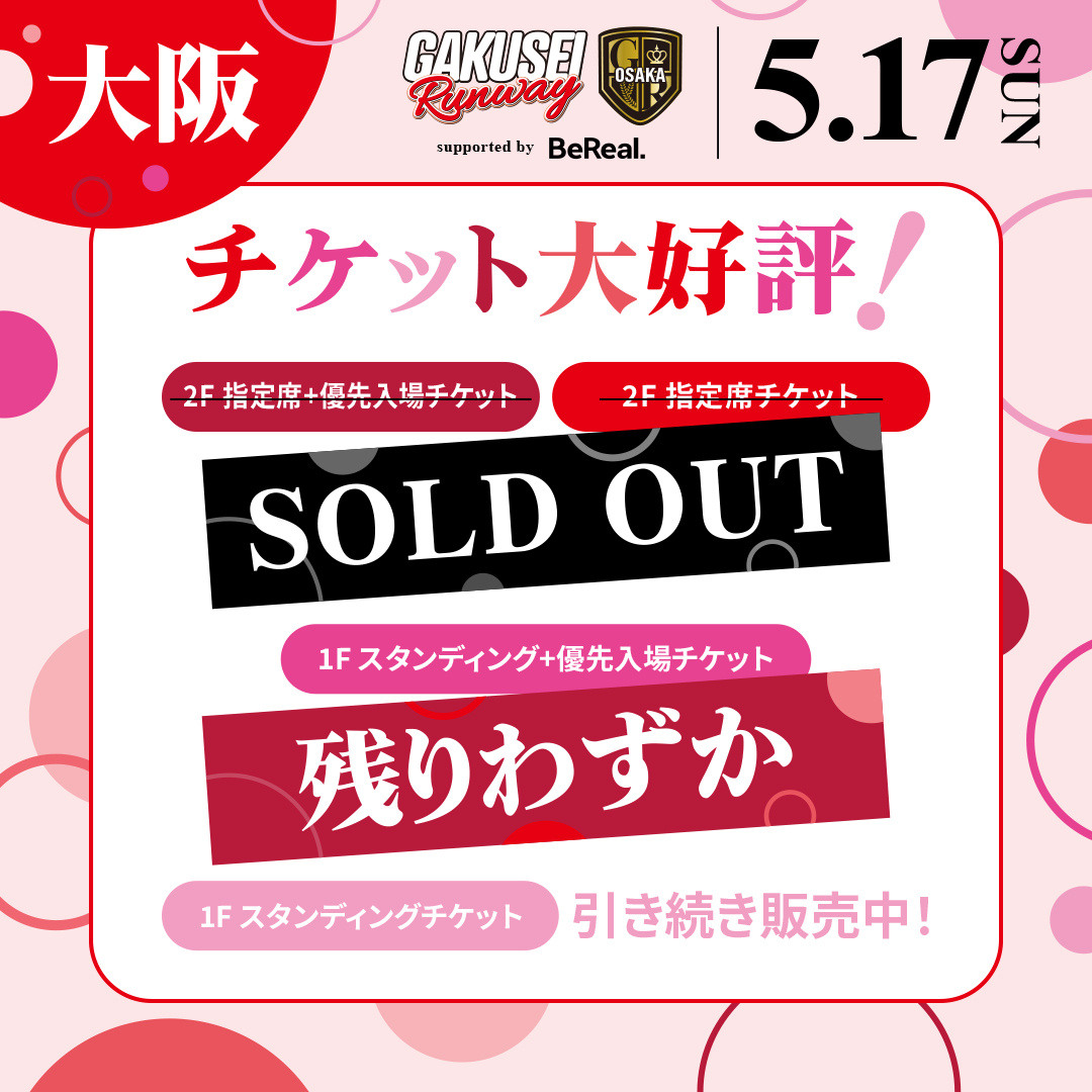 速報!2階指定席+優先入場チケット、2階指定席チケットが大好評につき完売!1階スタンディング+優先入場チケット